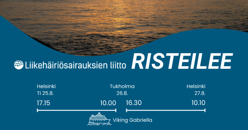 Tervetuloa aalloille risteilemään Liikehäiriösairauksien liiton kanssa Helsingistä Tukholmaan! Milloin? Mistä? Katajanokan terminaali (Katajanokanlaituri 8, 00160 Helsinki), jonne kokoontuminen 25.8. viimeistään…